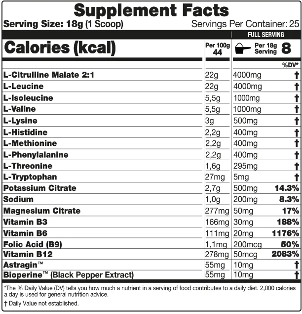 | L-Citrulline Malate 2:1 | 4000 mg |